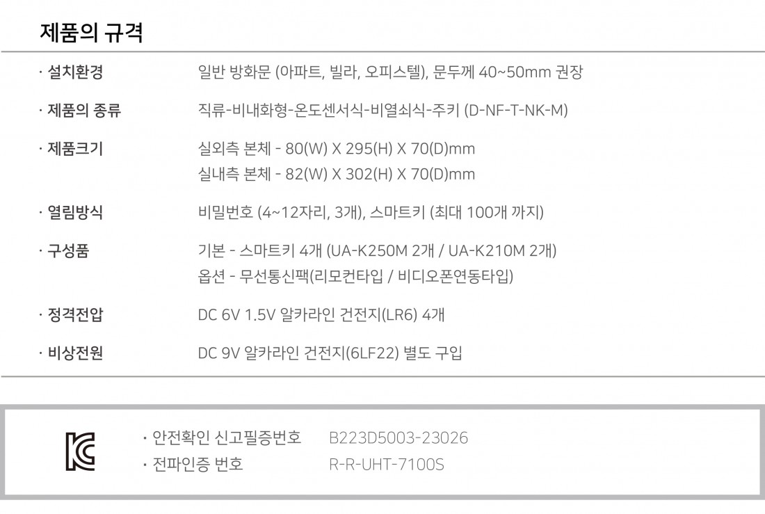구성물 기본구성 스마트키 4개 (UA-K250M 2개 / UA-K210M 2개)